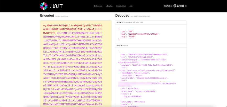 The example below shows an encoded access token and the same access token decoded. The decoded access token shows that the TSG_ID is 1838006364.